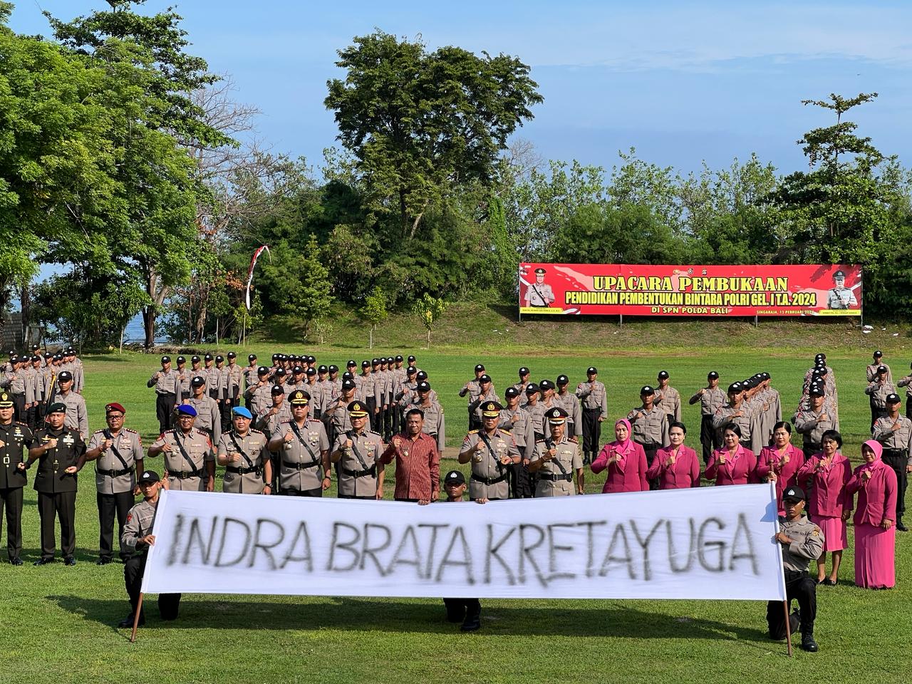 Bali-Kapolda Bali, Irjen. Pol. Ida Bagus Kd Putra Narendra, S.I.K., M.Si., memimpin upacara Pembukaan Pendidikan Pembentukan Bintara Polri Gelombang I T.A. 2024. Upacara Diktukba berlangsung di Lapangan Bhakti Sekolah Keposian Negara (SPN) Polda Bali, Selasa (13/2/2024).